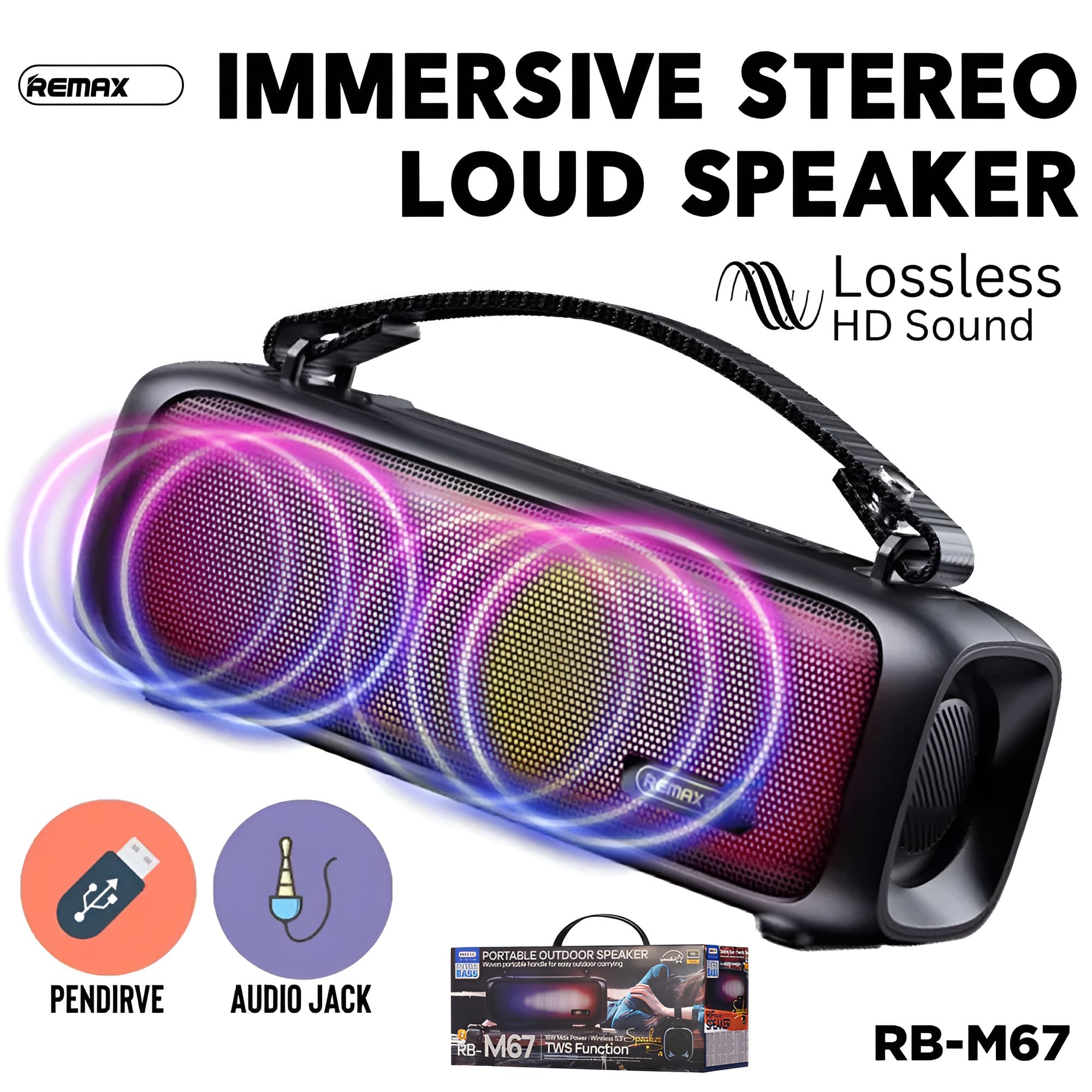 REMAX Portable Super Bass Wireless Party Speaker With RGB Lights RB-M67 Bluetooth Loud Speaker With Subwoofer Stereo 100% Original REMAX Speaker Bluetooth.